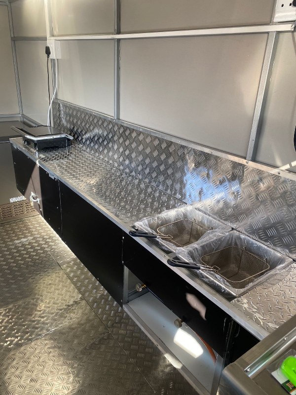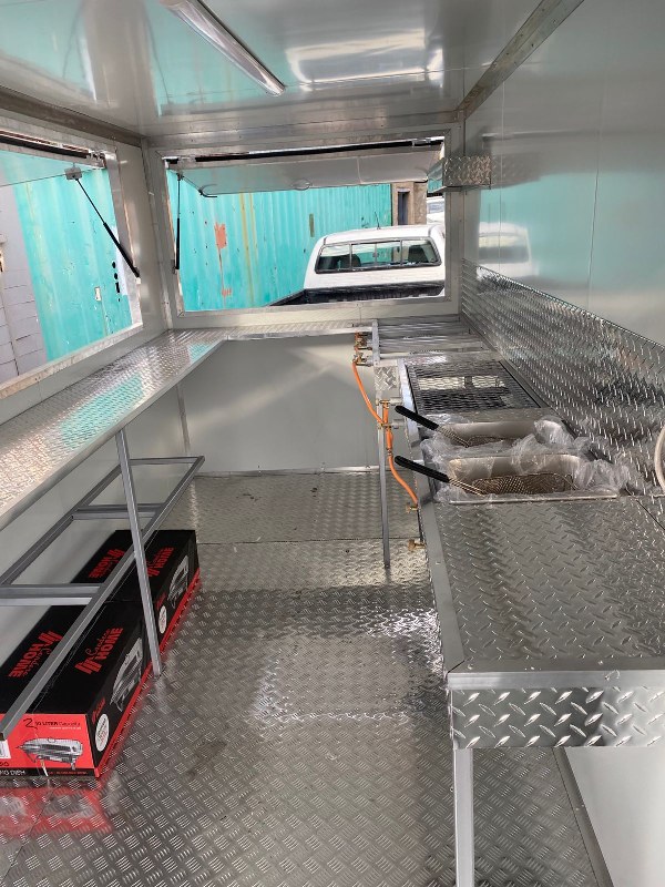 Fully Equipped: Gas plumbing, sinks, electrical wiring, shelves, fryers — ready to serve from day one.